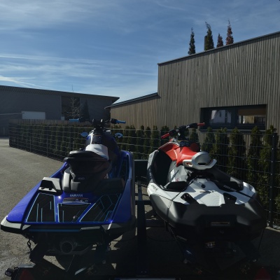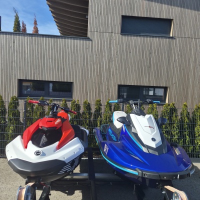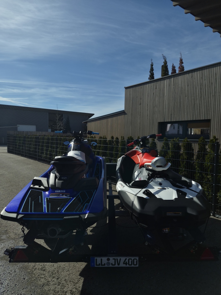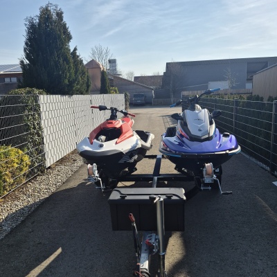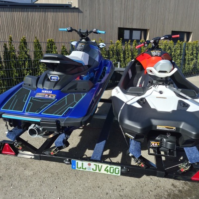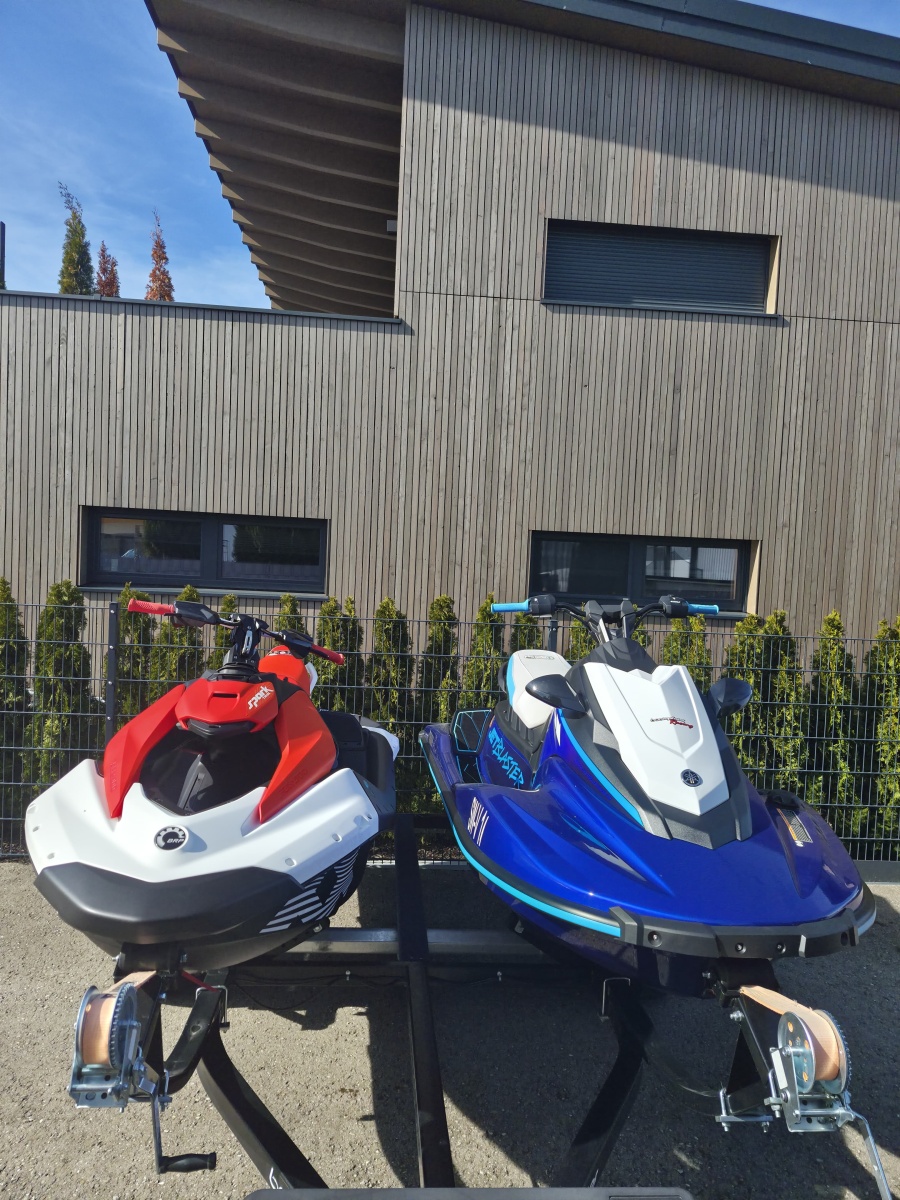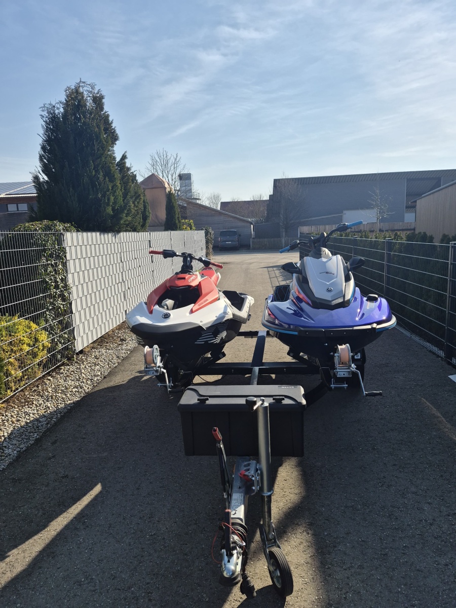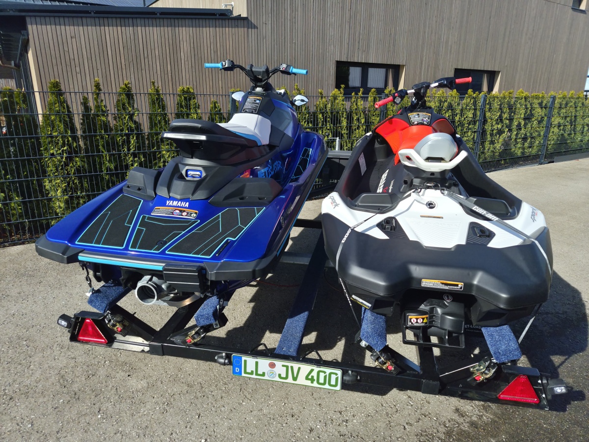 Die Jet-Ski stehen selbstverständlich auf Anhänger. Für Mieter die 2 Jet-Ski´s mieten wollen steht auch ein Doppelanhänger zur Verfügung.